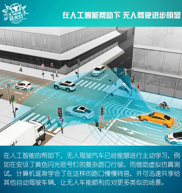 在很多人看來,至少還需要數(shù)十年的時間,無人駕駛汽車才能真正成為我們生活中的一部分。但現(xiàn)在看來這一時間表完全有可能提前。在人工智能的幫助下,無人駕駛汽車已經(jīng)能夠進行主動學習,例如在安設(shè)了黃色閃光信號燈的復雜路口行駛。而借助虛擬仿真測試,計算機逐漸學會了在這樣的路口慢慢轉(zhuǎn)彎,并可迅速共享給其他自動駕駛車輛,讓無人車能順利應(yīng)對更多類似的場景。
